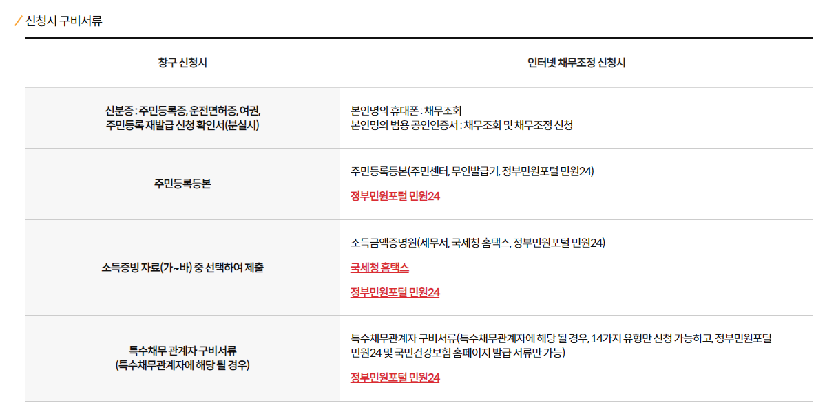• 신청서: 국민행복기금에서 제공하는 채무조정 신청서를 작성합니다.