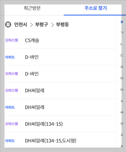 ▲ 주소를 검색하면 나오는 이 리스트에서 찾거나