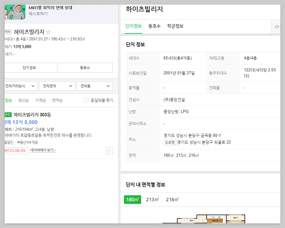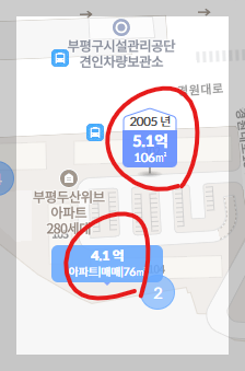 ▲ 상단의 아파트를 누르고 들어가는 화면입니다.