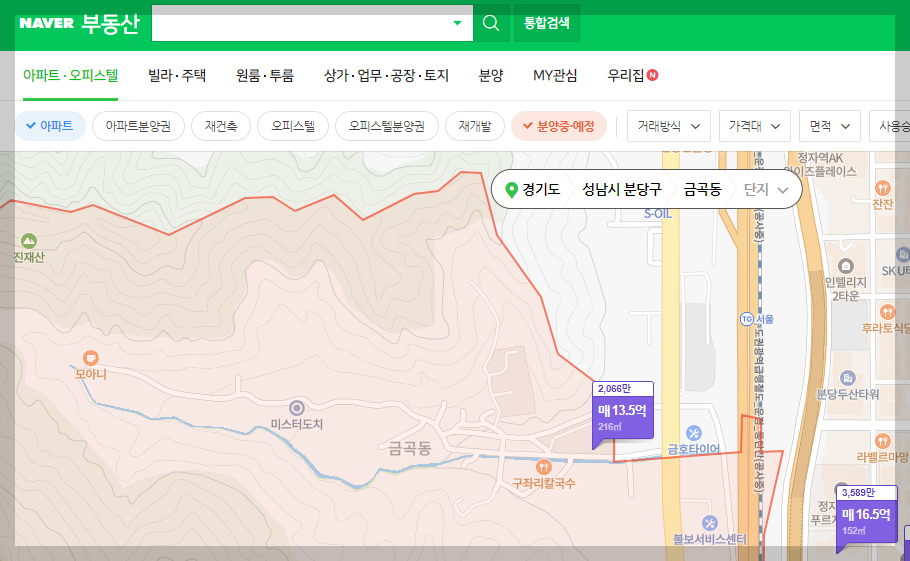 ▲ 만약 PC에서 부동산을 체크 조회하고 계신다면, 마우스만 올려도 확인하실 수 있습니다.