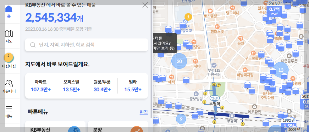 ▲ KB부동산도 사용하시는 분들이 많습니다. 과거 리브온이라고 불렸던 서비스입니다.