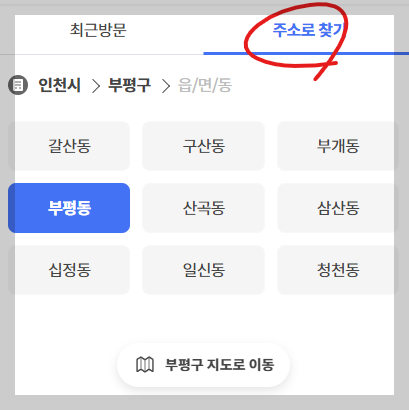 ▲ 주소로 찾기를 누르면 쉽게 찾을 수 있습니다.