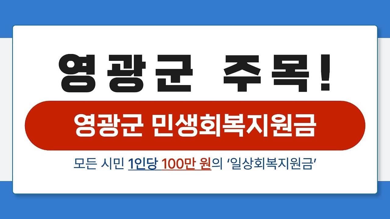 갑작스러운 물가 상승과 경기 침체로 생활비 부담이 커진 요즘, 영광군에서는 모든 군민에게 1차분으로 1인당 50만 원을 지급하고 2차분으로 50만원을 지급하는 '총 100만원 민생경제회복지원금'을 지원한다.