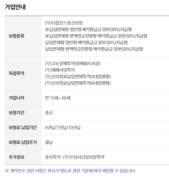 ✅이번에 알아볼 것은 '더블찬스 종신보험'
