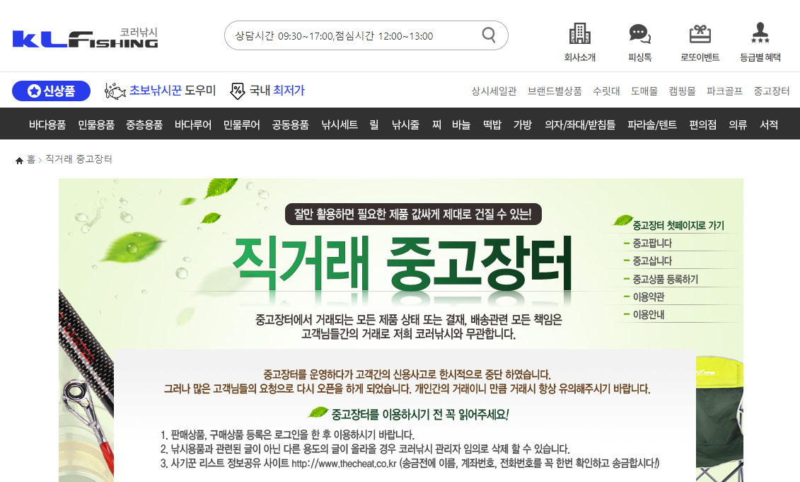 코러낚시 온라인 중고 낚시용품 직거래 사이트