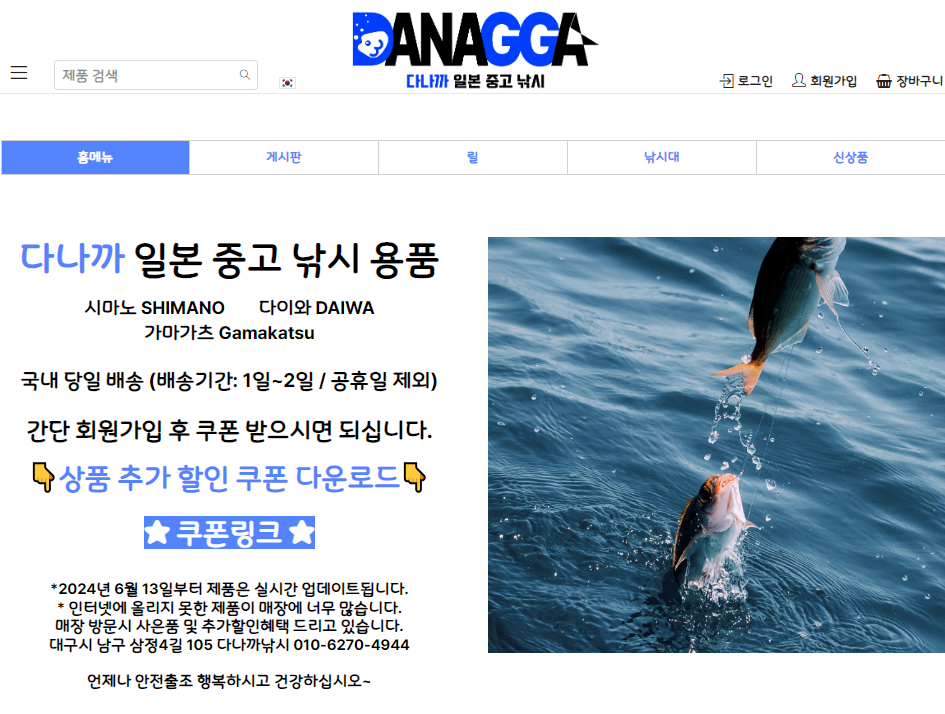 다나까 낚시는 대구 남구 삼정4길 105에 위치한 일본 중고 낚시용품 전문점입니다. 다양한 일본산 낚시용품을 저렴하게 구매할 수 있으며, 매장 방문 시 추가 할인과 사은품 혜택도 받을 수 있습니다.