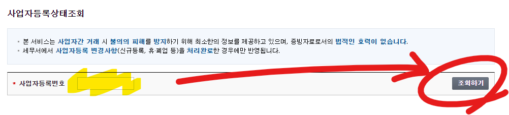 만약 사업자 주민번호로 상태를 조회해야 할 경우 본인 인증 후 이용해야합니다! 인증을 미리 준비해주세요. :)