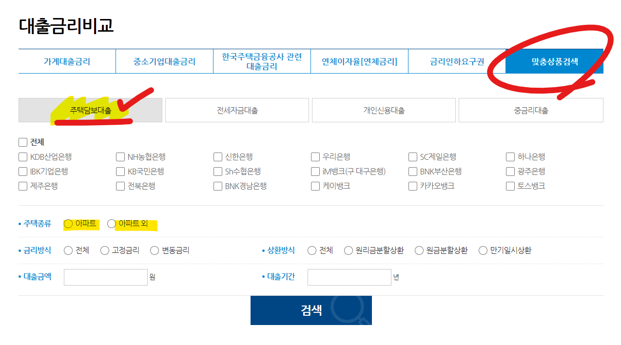 모든 은행의 주택담보대출들을 비교할 수 있는 사이트도 알려드릴게요.